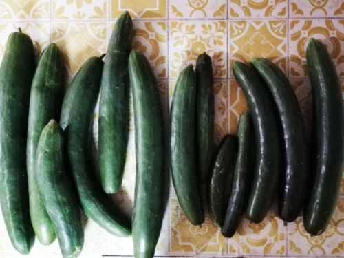 連日の雨のせいで太ったキュウリが大量にとれます(笑)