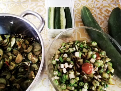 キューちゃん漬け、浅漬け、サラダ、酢の物、みそ炒め、なんかよくわからないもの…