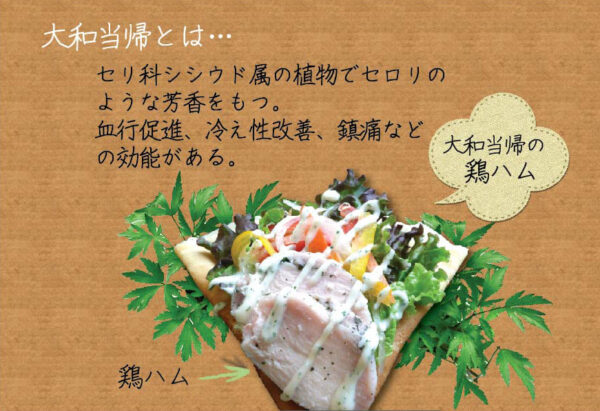 漢方薬の材料、大和当帰を使ったメニューを考えてほしいと主催者に言われました。